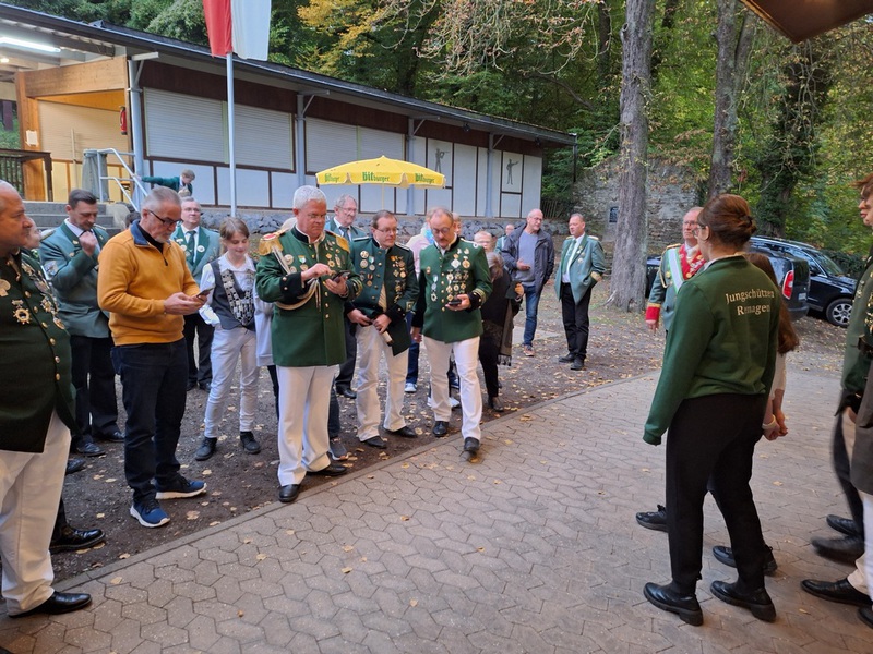 Zusätzlich wurde in diesem Jahr nicht nur der silber tragende König Boris Laux, mit allen Ehren an seiner Hofburg abgeholt, sondern vorher auch unser aktuell neuer Bezirkskönig Martin Schnitker, der ebenso in Zugfolge mit Marschmusik des Musikvereines Hönningen und jeweils mit den begleitenden perkusionisten der Böllerbuben unterstützt, an seiner Residenz sein Debüt gab.